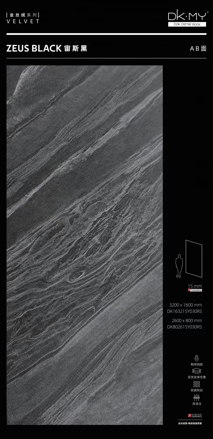 金丝绒肤感面15mm厚(楼梯-橱柜台面专用)——宙斯黑
